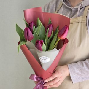 Главная / Каталог / БУКЕТЫ / БУКЕТЫ ИЗ ТЮЛЬПАНОВ / Букет «Карминная симфония»