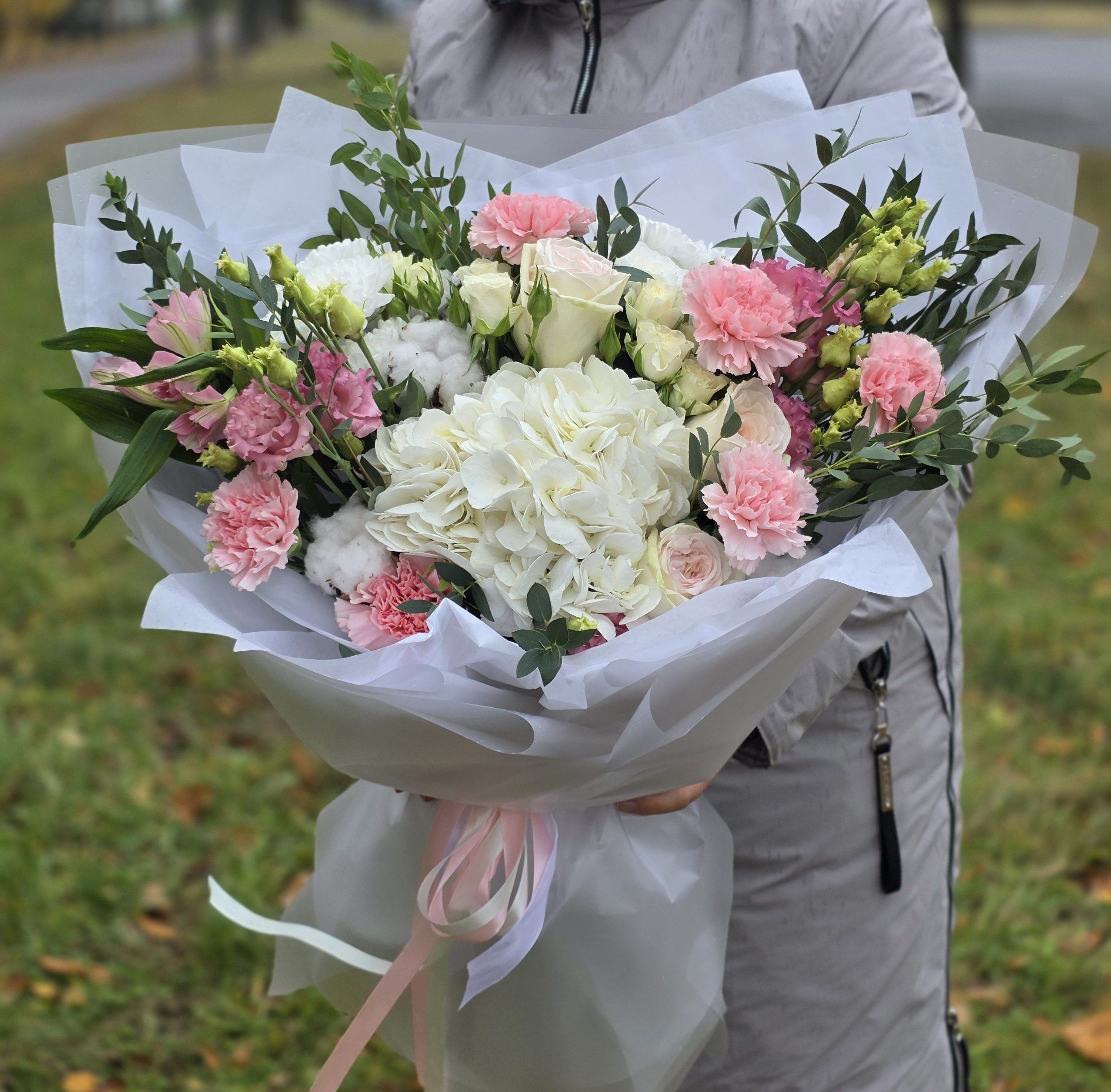 Букет «Парящий эфир» — пышный и многослойный, что в нем хочется утонуть, как в пушистой перине.
