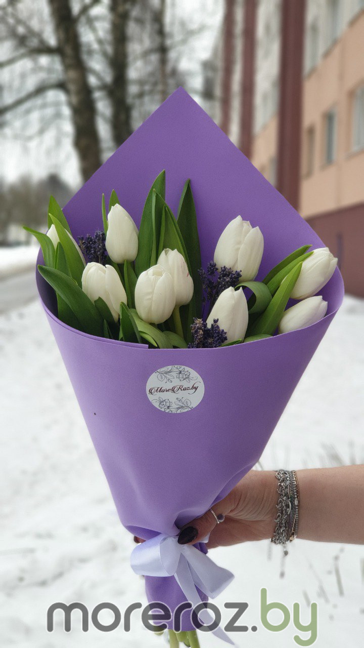 Главная / Каталог / БУКЕТЫ / БУКЕТЫ ИЗ ТЮЛЬПАНОВ / Букет тюльпанов с лавандой