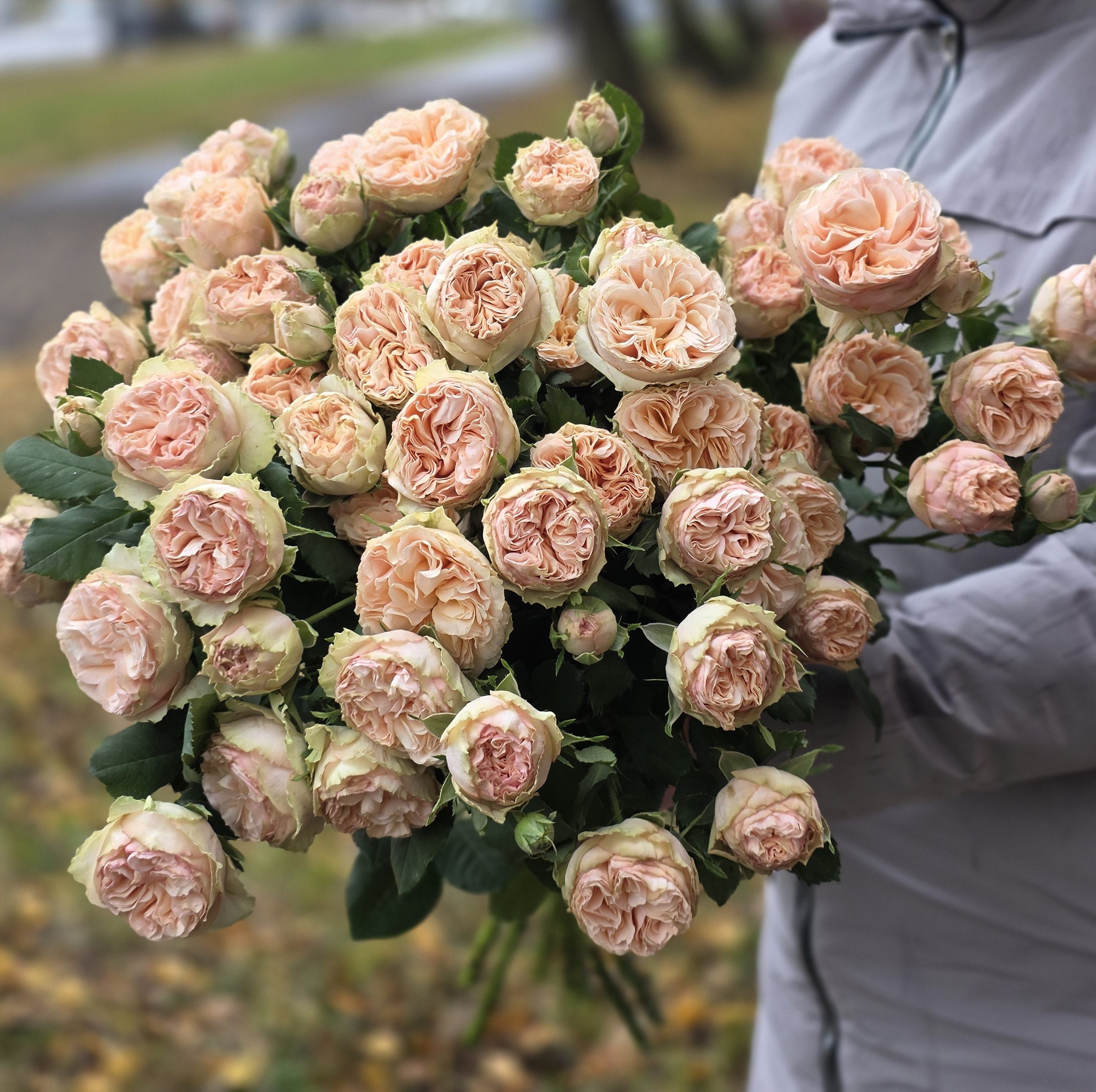 Розы кустовые пионовидные кремовые вызовут восторг у получательницы!